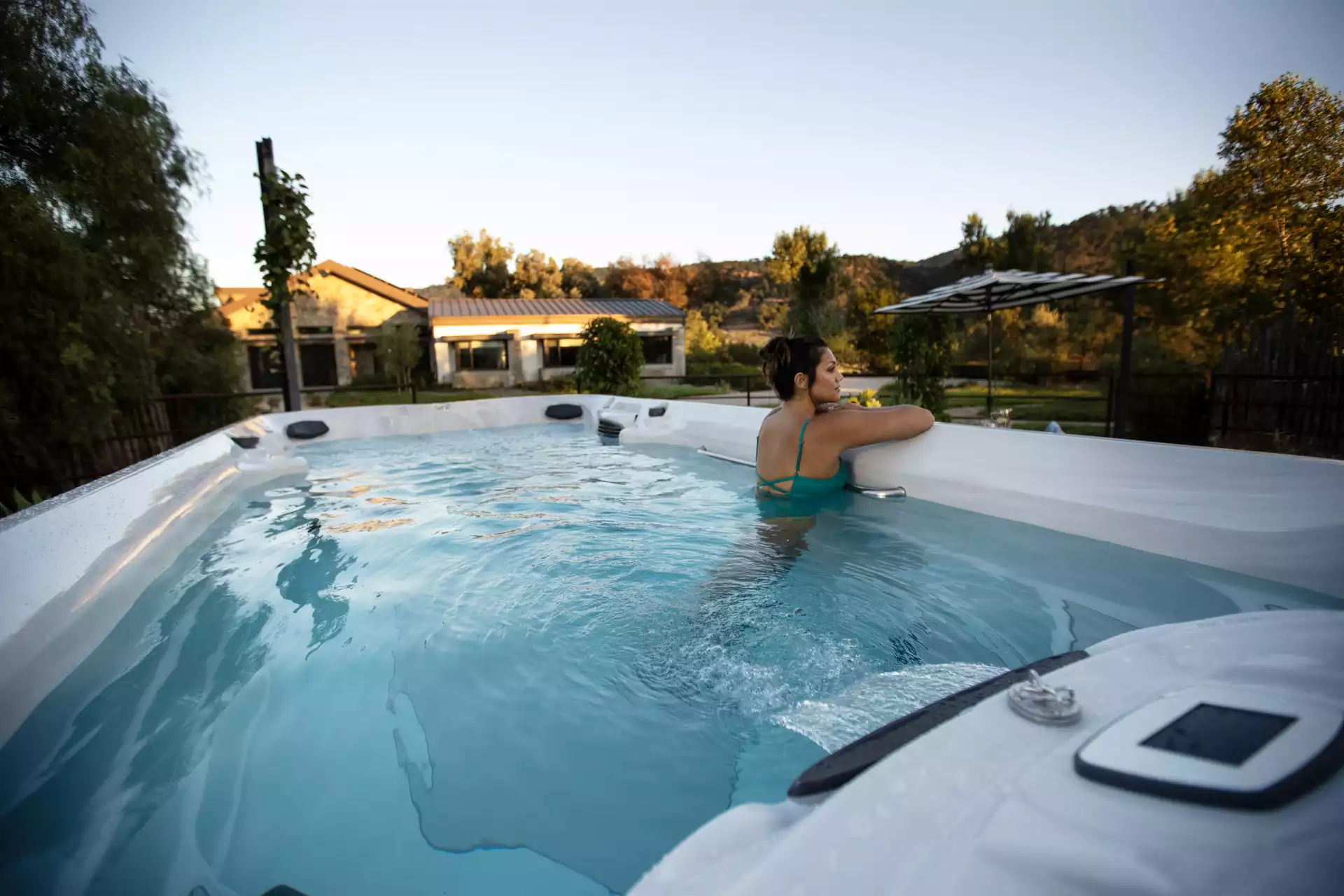 Bring relaxation, recreation and entertainment to your backyard with a swim spa. Often described as the perfect combination of a hot tub and swimming pool, swim spas offer the shared benefits and features of both. Enjoy a larger area to swim and play, with the addition of a comfortable seated area that is perfect for relaxation – all in one comprehensive spa system.